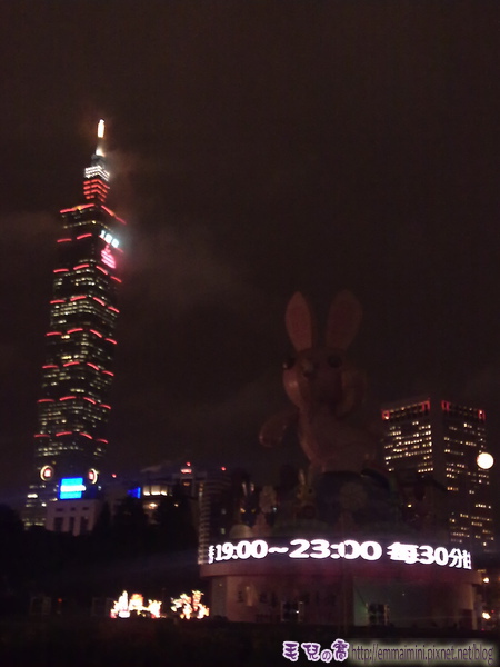 等待的時候一直在挑選角度拍照,終於讓我找到可以照到主燈的正面又能涵蓋101大樓的點,