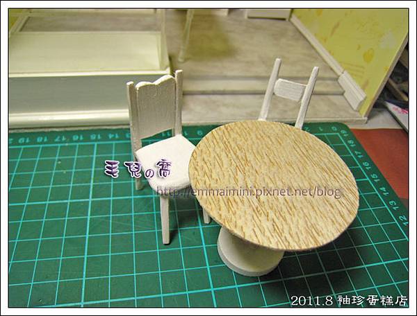 椅子當然就要搭配店裡其他傢俱的顏色,一樣用白色壓克力顏料上色,