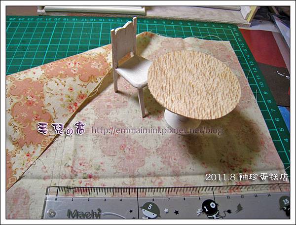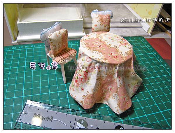 剪下的布尺寸:桌布的直徑約16公分,抱枕約6.4公分x3.2公分,