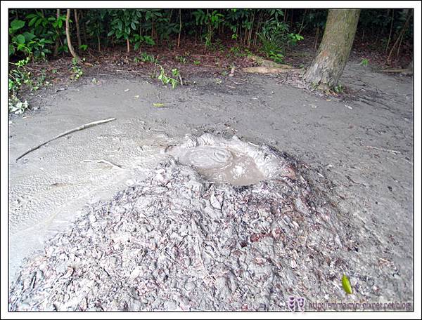 在另一角靠近樹林邊,有座地上的泥火山,所以就能看清楚那火山口,@@~