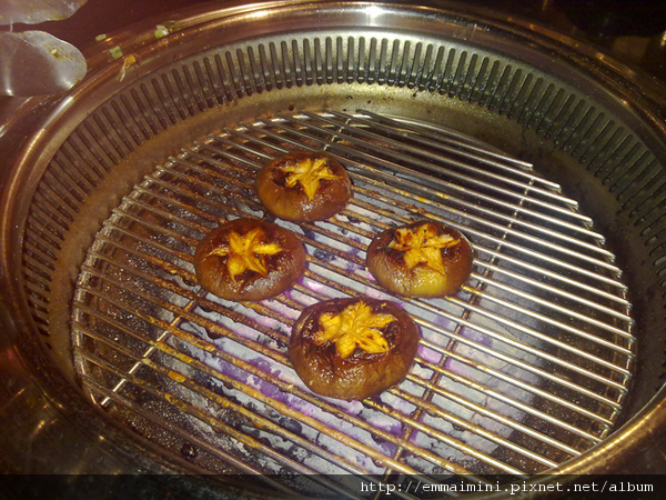 烤香菇,有特別的沾醬一起烤,好吃!