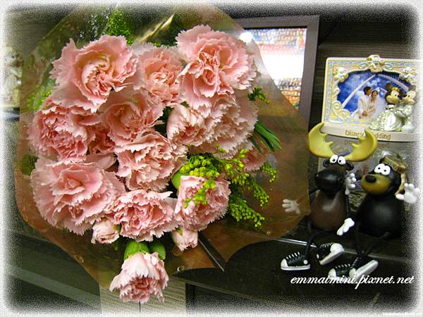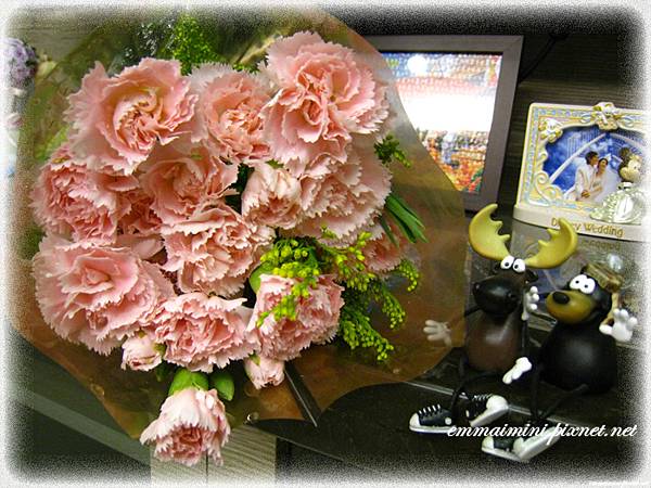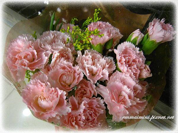 今天來分享粉紅色的康乃馨花束,與家中的新成員,