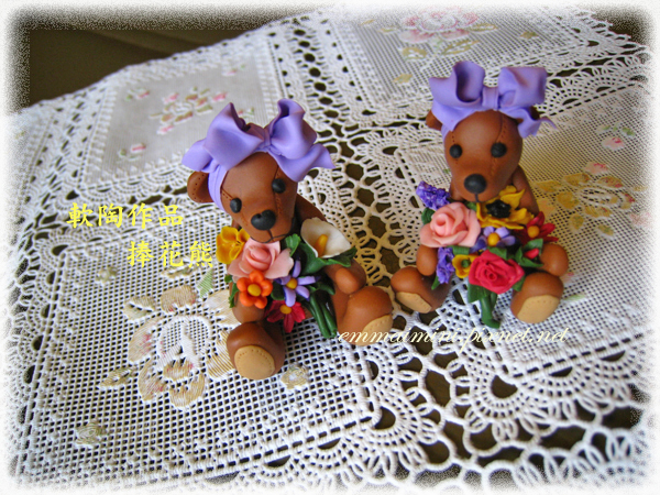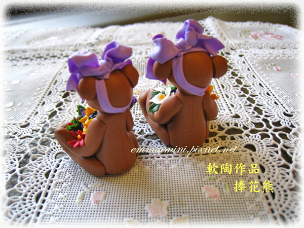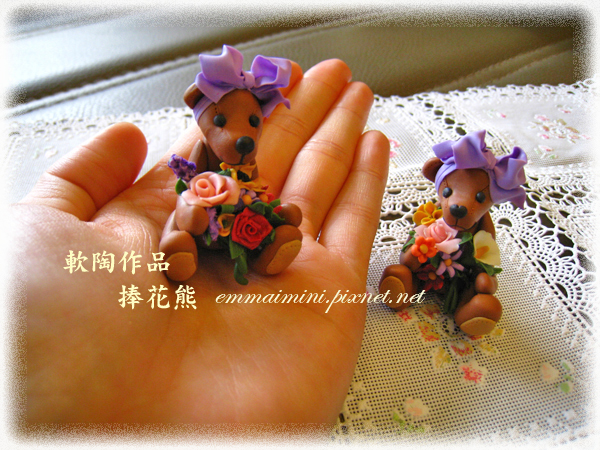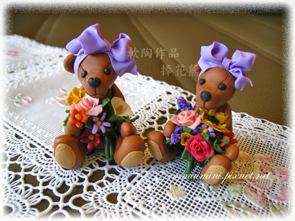 每朵花湊一湊讓兩隻熊的捧花束看起來還算豐富不單調,