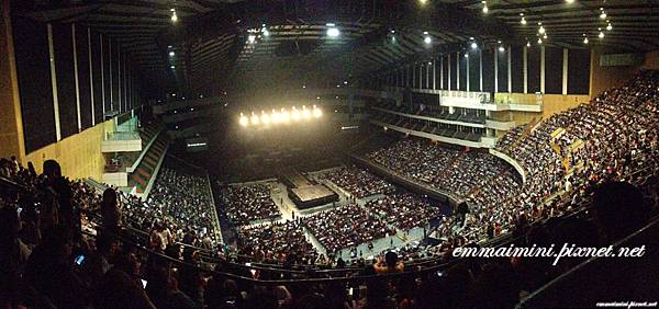 下圖是用我手機拍的全景圖唷!效果還不錯!小巨蛋裡真的座無虛席!
